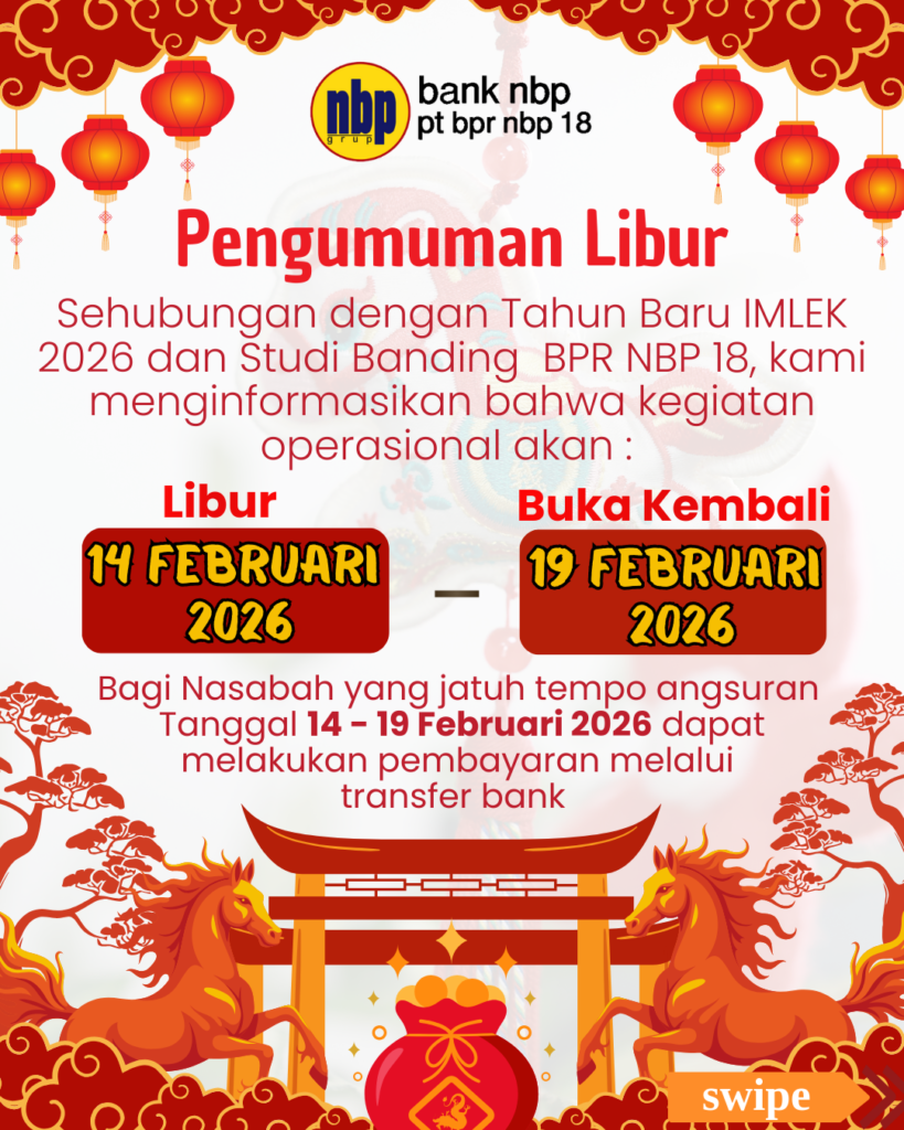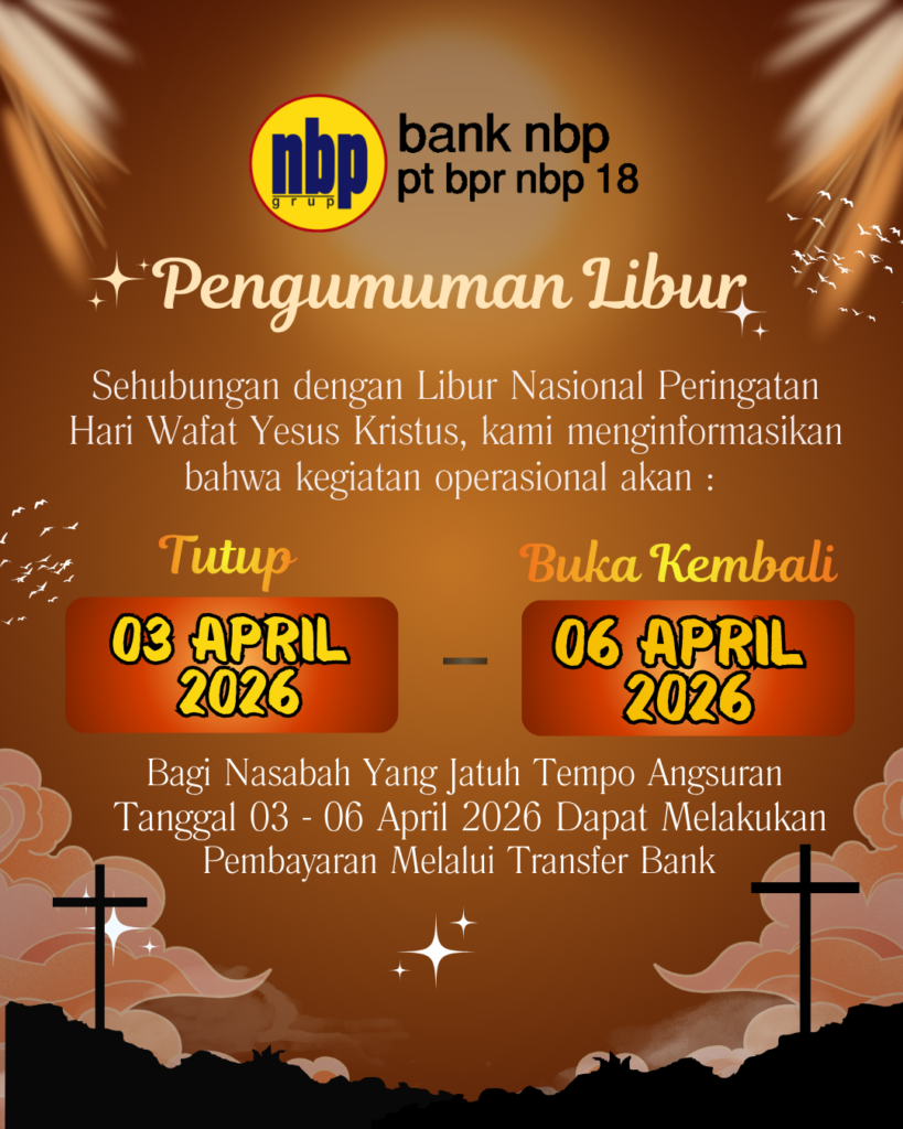 Jadilah nasabah dari bank PT.BPR NBP 18, suku bunga tinggi, biaya administrasi rendah, mudah dalam bertransaksi, pembukaan tabungan sangat mudah, jadi tunggu apalagi?